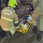 Colisão entre caminhonete e moto deixa jovem ferido e provoca incêndio em Rio Branco