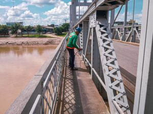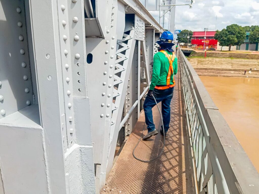 Durante o serviço, as equipes removeram as pichações, fizeram a lavagem da estrutura metálica e a limpeza das laterais e acessos da ponte. Sula Ximenes destacou que a ponte é estrutura histórica e segue sendo utilizada diariamente pela população.