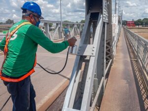 Deracre faz limpeza e pintura na Ponte Metálica Juscelino Kubitschek em Rio Branco