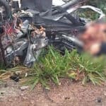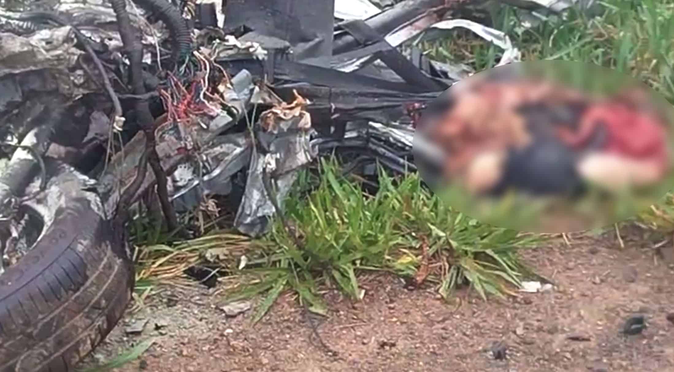 Um documento foi localizado, mas não foi possível ainda, saber se é realmente do motorista da pick-up que ficou completamente destruído.
