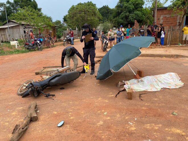 Um grave acidente envolvendo um carro e uma motocicleta resultou na morte de Manoel da Silva, de 53 anos, na manhã desta segunda-feira (21), no cruzamento das ruas Áureo de Andrade e Bom Futuro, na Vila Paquetá, em Porto Acre.