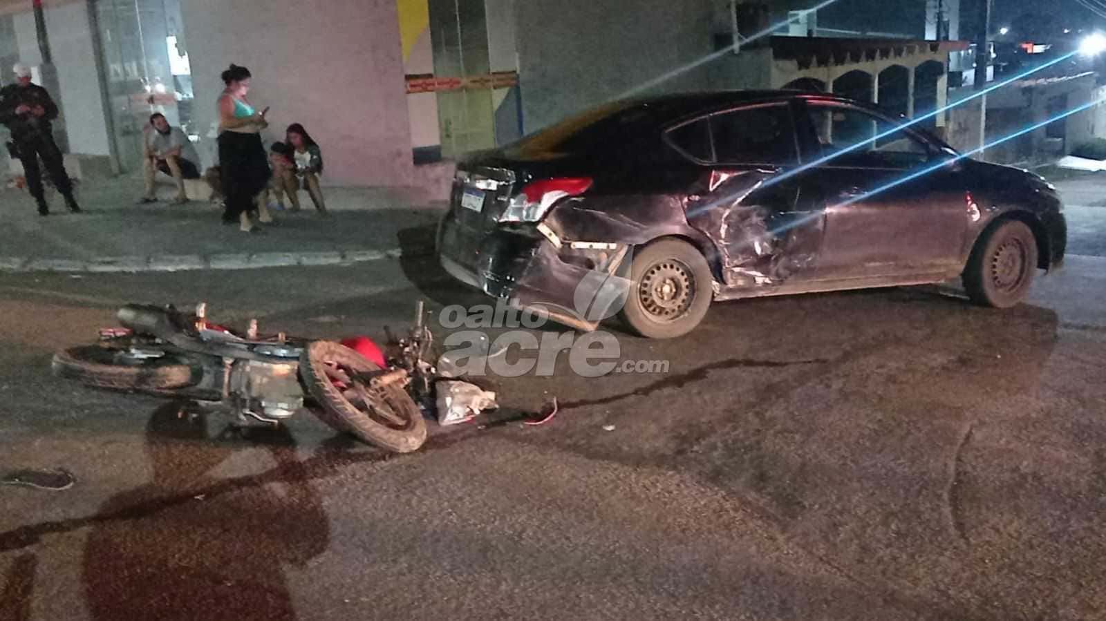 No sábado à noite, um acidente envolvendo um carro e uma motocicleta deixou um motociclista ferido em Rio Branco, no cruzamento das ruas Rio de Janeiro e Sena Madureira, no bairro Bela Vista.