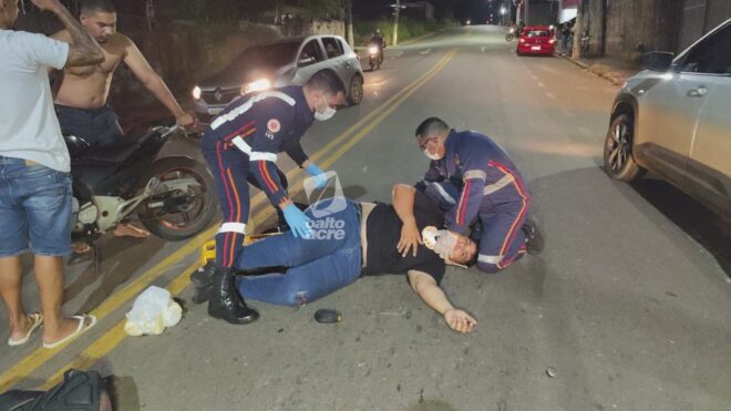 Uma colisão envolvendo um carro e uma motocicleta deixou Johnn Wesley da Silva Rocha, de 33 anos, ferido na noite deste sábado (7), na Rua Minas Gerais, no bairro Dom Giocondo, em Rio Branco.
