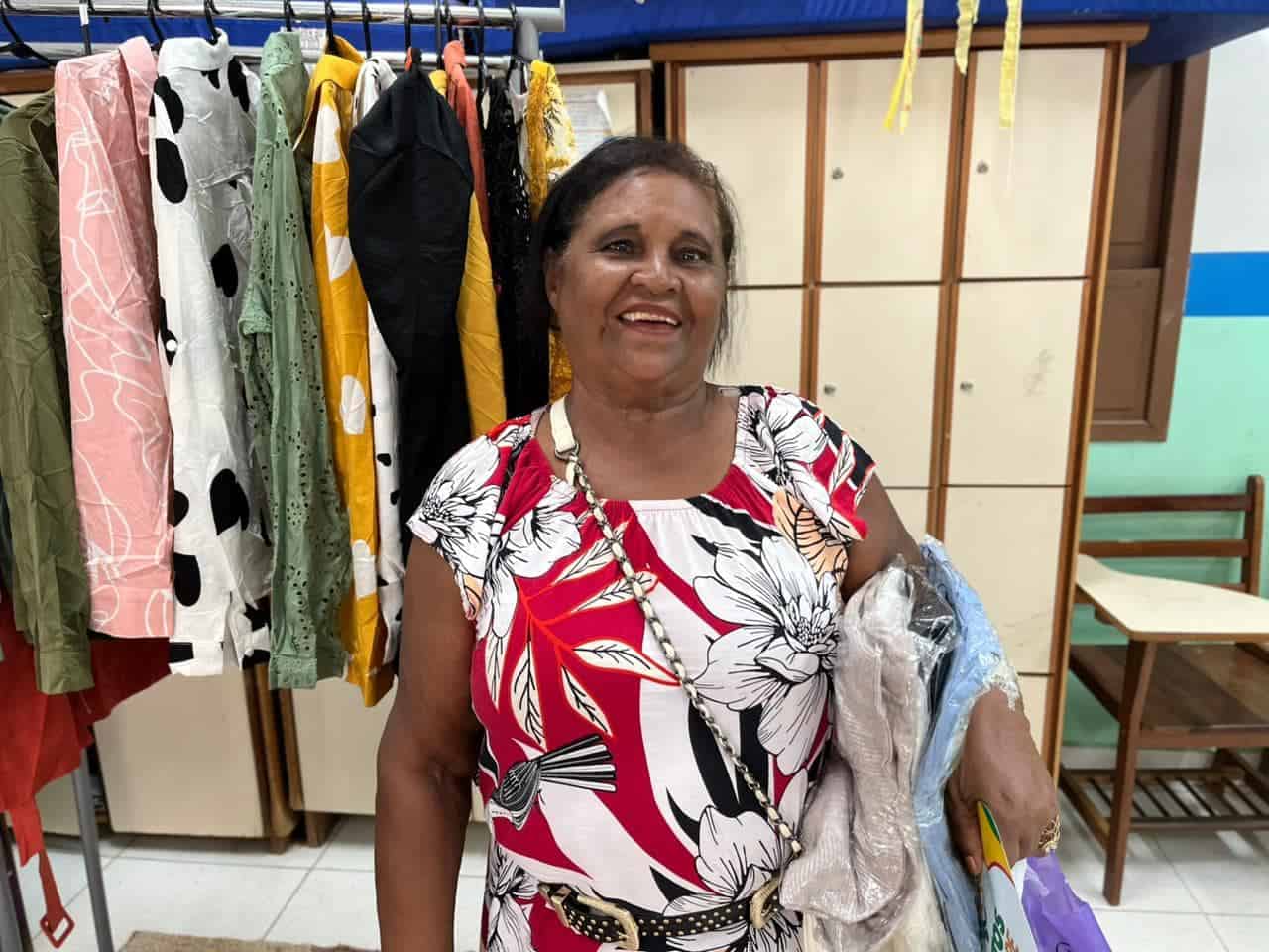 Rosilda Rodrigues expressou gratidão ao receber o kit do Vestuário Social. Foto: Daniel Villamor/SEASDH