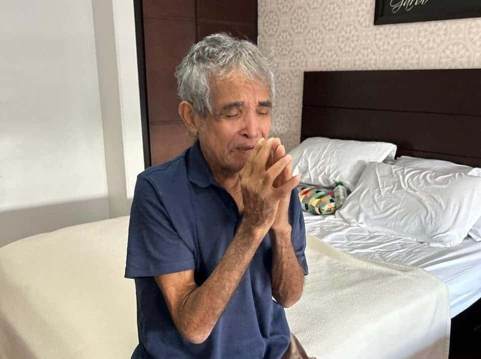Momento emocionante que seu Joaquim recebeu a notícia no Hospital Universitário, de liberação pela Embaixada Brasileira. Foto: arquivo da família