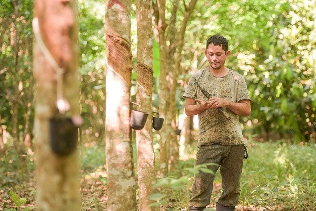 Edílio e outras famílias beneficiadas da região ainda fizeram um acordo para que dois produtores fossem os responsáveis pela colheita do látex, dividindo os ganhos com os proprietários e gerando renda para quem está de fora.