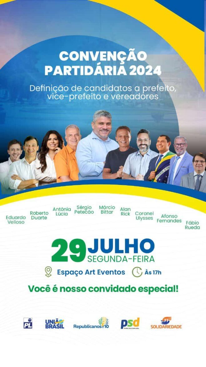 A convecção partidária que oficializara o nome de Sérgio Lopes candidato a reeleição e os nomes dos postulantes ao cargo de vereadores será dia 29 de julho de 2024, no Clube Arte Eventos, com início previsto para as 17h.