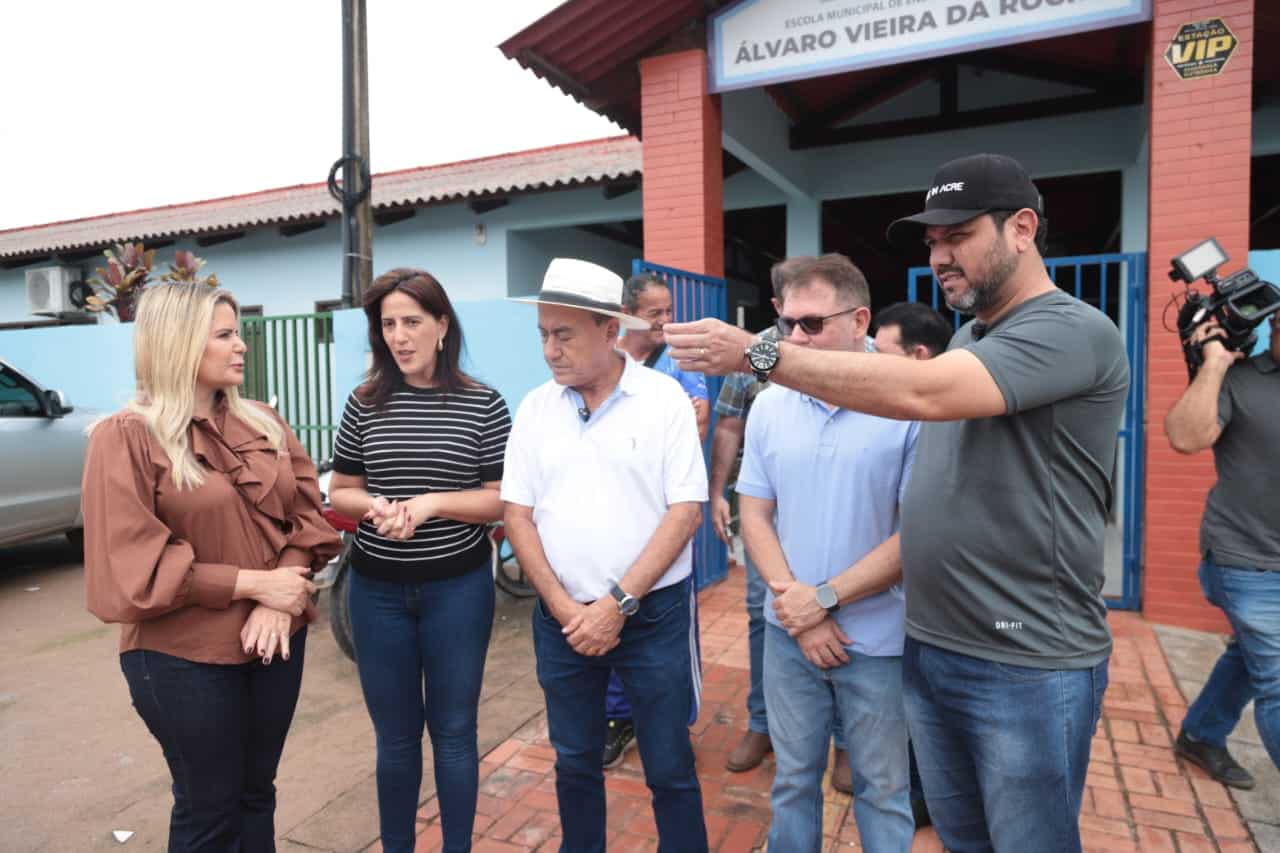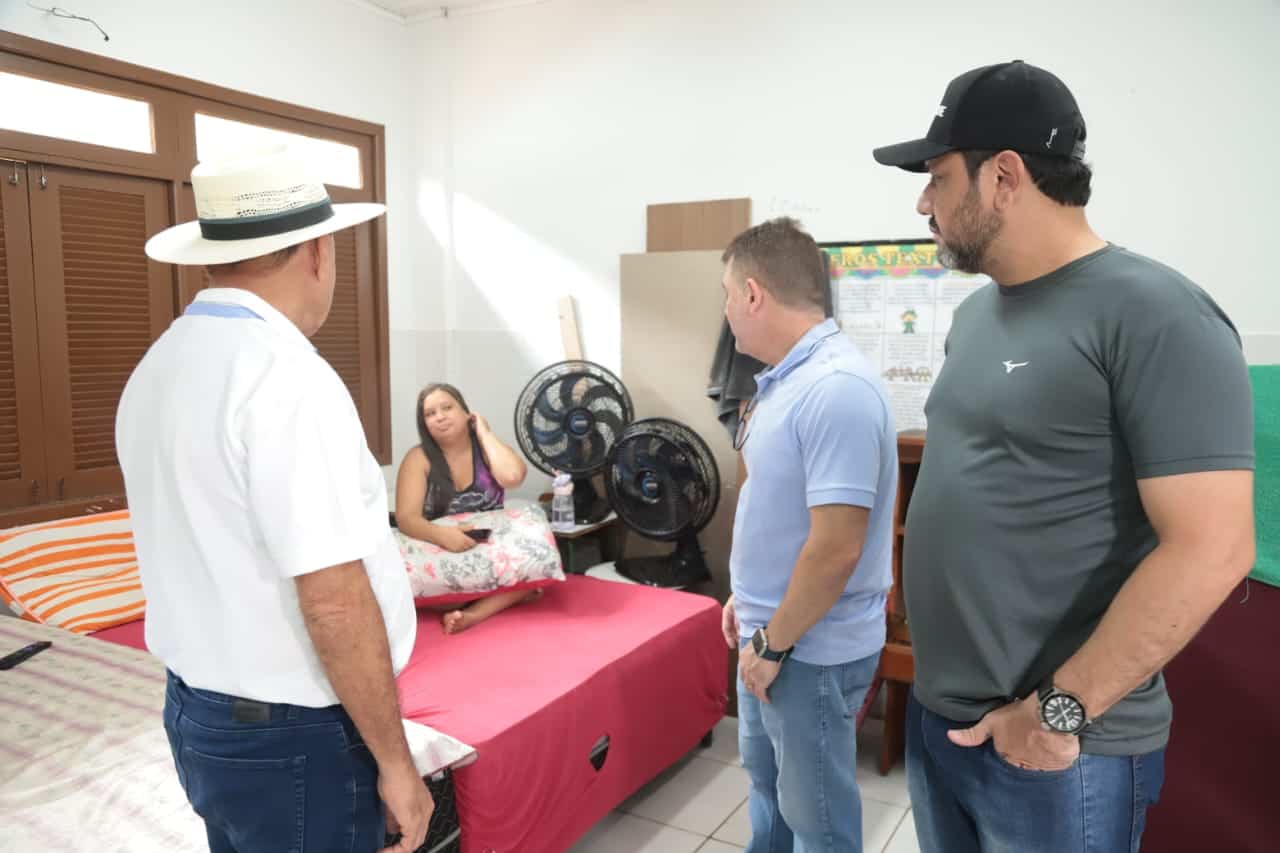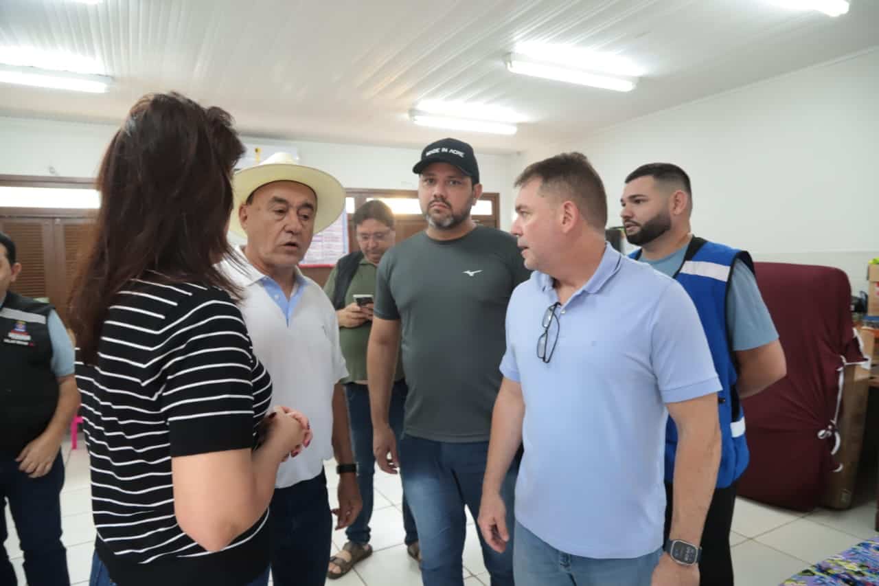 Logo após o encontro, o prefeito visitou a Escola Álvaro Vieira da Rocha, no bairro Conquista, onde 10 famílias — totalizando 36 pessoas — já estão abrigadas pela Defesa Civil Municipal e pela Secretaria de Assistência Social.