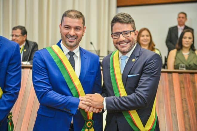 Demonstrando respeito e a importância das alianças entre os poderes em prol da população, o governador Gladson Cameli acompanhou, neste sábado, 1º, no plenário da Assembleia Legislativa do Acre (Aleac), a cerimônia de posse da nova mesa diretora da Casa para o biênio 2025/2026. A nova composição da mesa diretora tem como presidente o deputado Nicolau Junior, que assume essa posição pela segunda vez. A solenidade também foi marcada pela entrega da mais alta honraria do Estado para parlamentares.