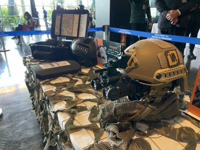 Além dos capacetes, os binóculos, que utilizam tecnologia térmica avançada para detecção de pessoas e veículos a uma distância de até 8 quilômetros, para visualizar as imagens, possibilitam o aumento da consciência situacional das equipes policiais em atuação nas fronteiras e utilizam tecnologia superior na ampliação da visão termal, com capacidade de juntar imagens e sua geolocalização, processo pelo qual algo ou alguém pode ser localizado com base em coordenadas geográficas, vêm com tripé, baterias e cabos.