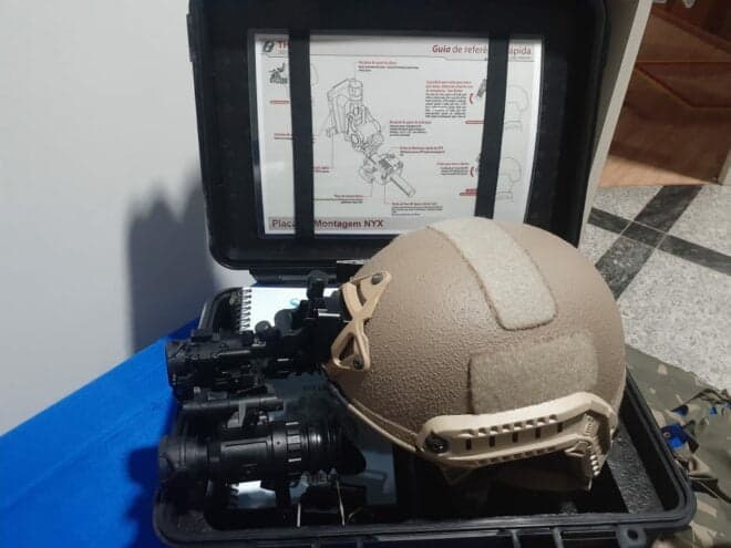 Além dos capacetes, os binóculos, que utilizam tecnologia térmica avançada para detecção de pessoas e veículos a uma distância de até 8 quilômetros, para visualizar as imagens, possibilitam o aumento da consciência situacional das equipes policiais em atuação nas fronteiras e utilizam tecnologia superior na ampliação da visão termal, com capacidade de juntar imagens e sua geolocalização, processo pelo qual algo ou alguém pode ser localizado com base em coordenadas geográficas, vêm com tripé, baterias e cabos.