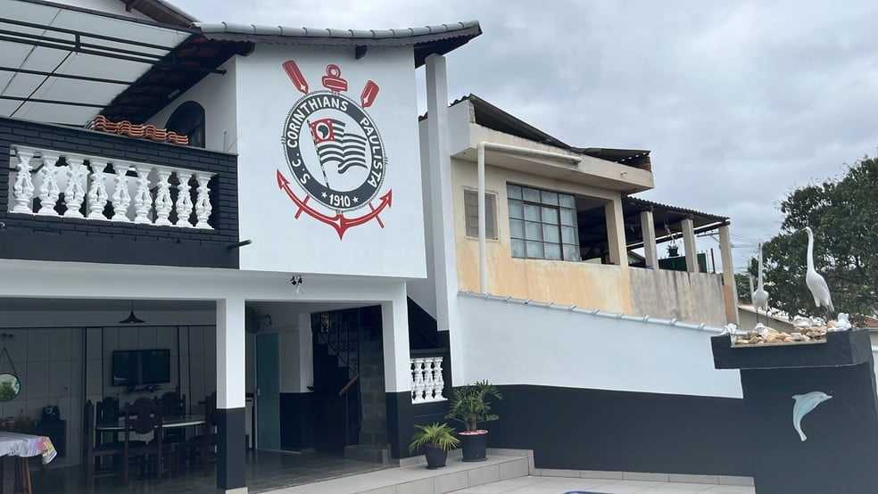 Além disso, não é preciso nem entrar na casa para perceber que ali mora um corintiano fanático. Quem passa pela rua vê dois portões brancos com o símbolo do Corinthians desenhado junto de um gavião. A porta de entrada também tem o escudo do clube. Para completar, a calçada difere-se da dos vizinhos e tem a cor preta.