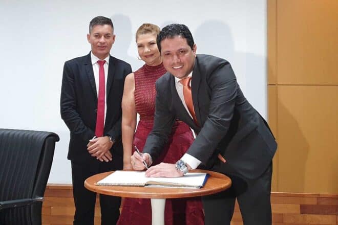 João Marcos Luz (MDB) tomou posse nesta quinta-feira, 02, como vereador de Rio Branco em cerimônia realizada no auditório da Federação das Indústrias do Estado do Acre (Fieac). O ato foi realizado antes da leitura da mensagem governamental feita pelo prefeito Tião Bocalom, na abertura do Ano Legislativo.