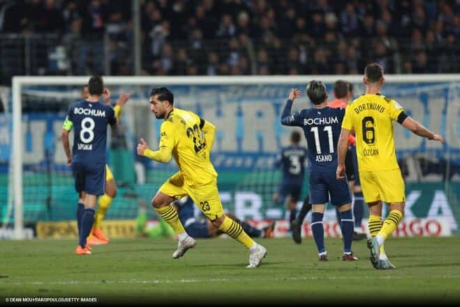 O Borussia Dortmund dominou o Bochum na etapa inicial, sofreu um susto no início do segundo tempo e confirmou a classificação na Copa da Alemanha com uma vitória por 2 a 1, fora de casa. O gol do triunfo foi marcado por Marco Reus, mas o lance de placa do jogo saiu dos pés de Emre Can, que anotou um golaço do meio de campo.