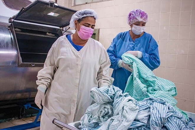 Na Fundação Hospital Estadual do Acre (Fundhacre), em Rio Branco, um serviço importante e muitas vezes invisível, realizado por 27 pessoas, mantém-se fluindo sem interrupções, pela assepsia do ambiente e pelo conforto e higiene dos pacientes e servidores do estabelecimento: o Setor de Lavanderia.