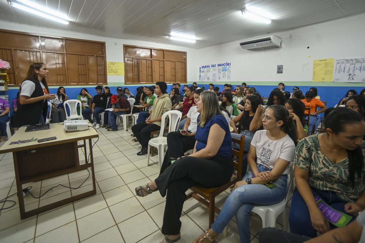 Como parte da programação do mutirão de serviços, houve uma palestra com 45 jovens do 1º ano do ensino médio da Escola Estadual Professor Marcílio Pontes dos Santos. Eles aprenderam sobre as formas de violência contra a mulher, os sinais de alerta para reconhecer um relacionamento abusivo, os direitos das vítimas e os canais de denúncia.