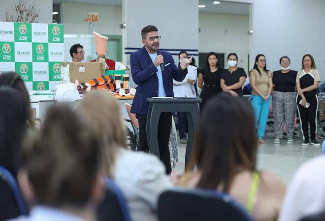 Presidente da Fundhacre falou sobre as ações e investimentos em saúde, para a melhoria dos serviços. Foto: Pedro Devanir/Secom