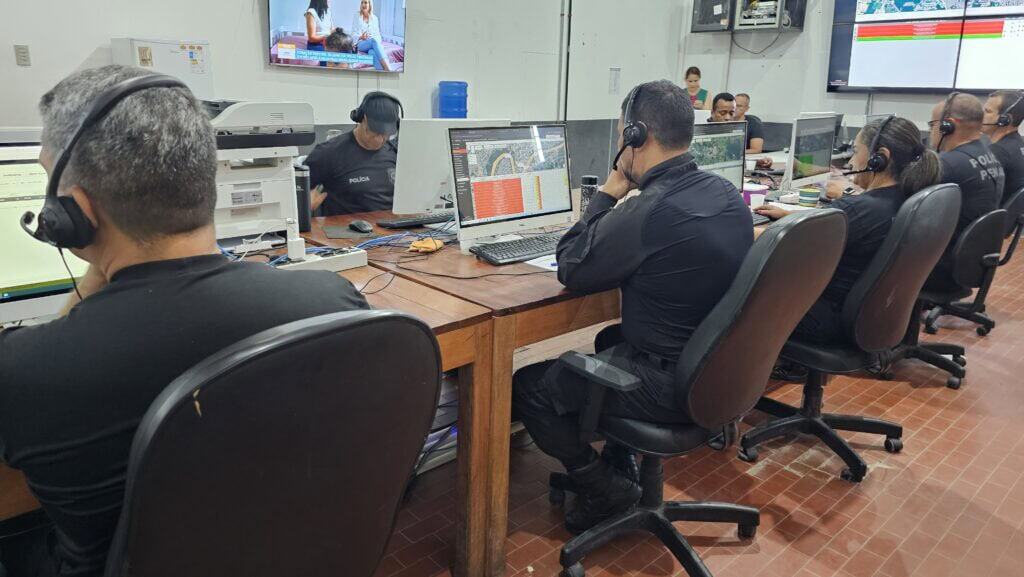 Sala de monitoramento eletrônico funciona 24h. Foto: Isabelle Nascimento/Iapen