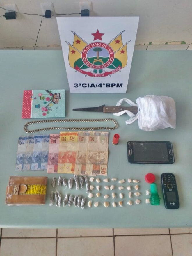 Por volta do meio dia deste sábado, 5 de junho, policiais militares da 3ª Companhia do 4º Batalhão de Polícia Militar (3ª Cia/4º BPM), localizada em Acrelândia, juntamente com policiais civis, prenderam um indivíduo e apreenderam um adolescente de 17 anos, além de 15 tabletes de maconha, 31 papelotes de merla e uma motocicleta. A ocorrência se deu na rua José de Deus.
