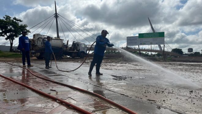 “É a determinação do nosso prefeito, já começar pelos bairros alagados. O bairro da Base foi um dos bairros, mas estamos trabalhando hoje também na 6 de Agosto, Cidade Nova, Cadeia Velha e também a curva do Rabo da Besta. Hoje em torno de 150 colaboradores ao todo, operadores, coordenadores e maquinários. Em torno de 55 máquinas, trabalhando”.