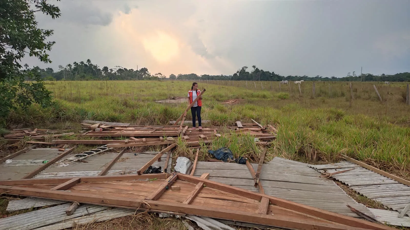 “É como se tivesse entrado um redemoinho e feito uma explosão da casa porque encontramos pedaços de madeira e de móveis a mais de 100 metros de distância que o vento levou. Está só o assoalho aqui, tudo que tinha dentro da casa foi devastado, não tem como recuperar nada”, disse.