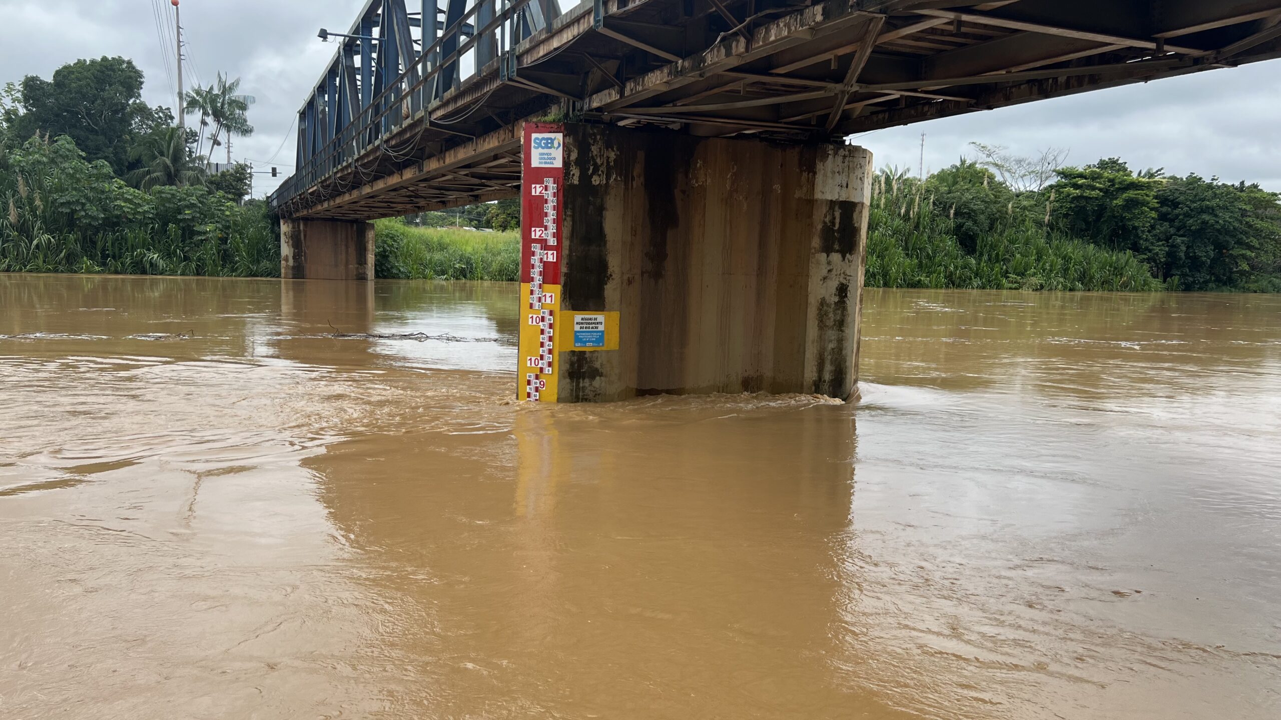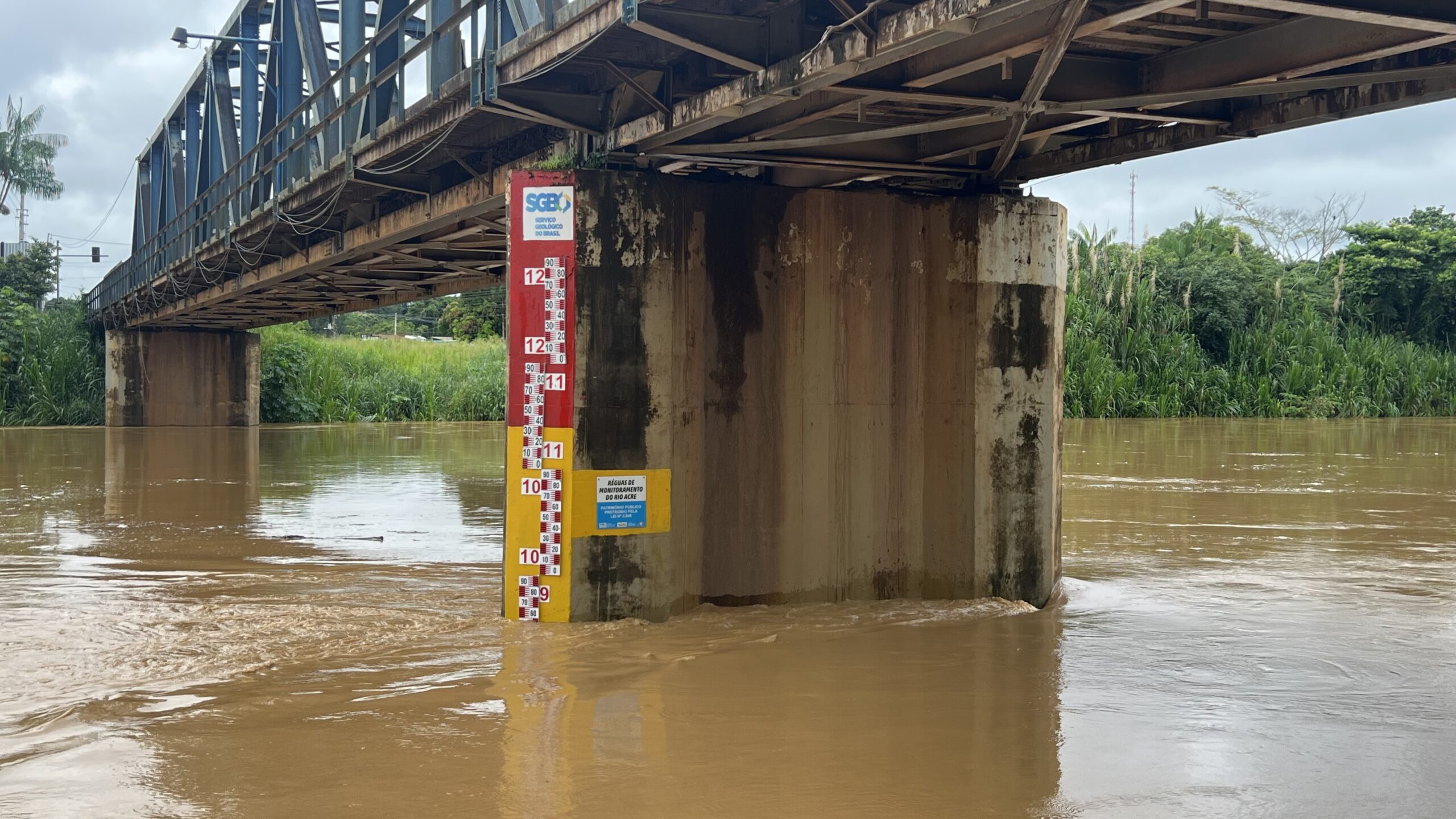 Por volta das 9h50, a régua instalada em Assis Brasil registrava 9,57 metros. Já na comunidade indígena da Aldeia dos Patos, localizada acima da cidade, o nível marcava 6,65 metros. Na estação de monitoramento da ponte binacional que liga o Brasil ao Peru, o rio chegou próximo de 7,40 metros, apresentando tendência de vazante nas horas seguintes.