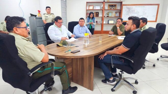 O general Oscar David Ruiz Arana, Comandante da Polícia de Pando, na Bolívia, reuniu-se com representantes do Ministério Público e da Direção Departamental de Migração em uma reunião de coordenação operacional interinstitucional. O objetivo do encontro foi alinhar e fortalecer as ações conjuntas entre os órgãos, focando na segurança, proteção de direitos e no atendimento integral à população do departamento.