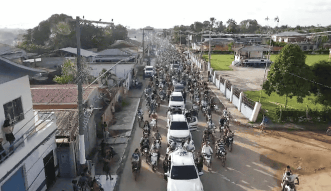 Em caminhonetes, carros e motocicletas, os moradores de Eirunepé, acompanharam o cortejo pelas principais ruas e avenidas da cidade.