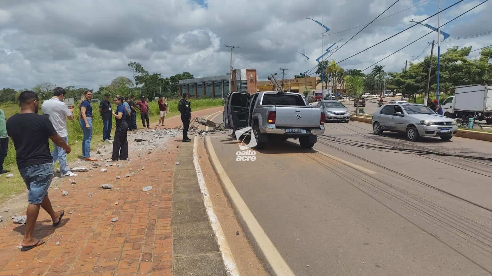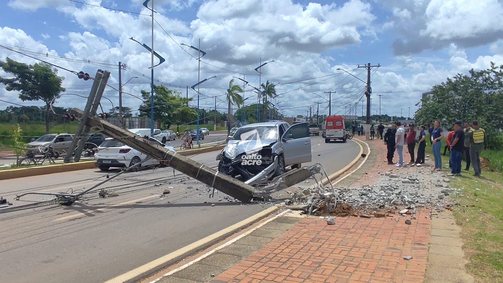 Acidente deixou poste de energia destruído e mobilizou equipes do Samu e da Polícia Militar em Rio Branco