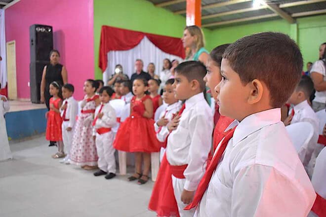 A Prefeita Fernanda também prestigiou a formatura de 60 alunos do ensino infantil da Escola Municipal Os Pastorinhos, o evento foi realizado no clube da Policia Militar de Brasileia e contou com a presença da Deputada Estadual Leila Galvão, Secretária Municipal de Educação Ramiege Rodrigues, funcionários da Escola, familiares e formandos.