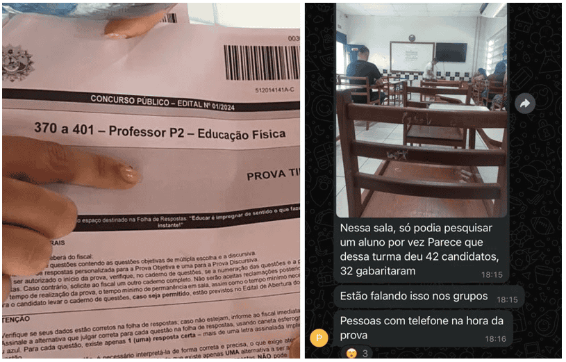 Outro vídeo compartilhado mostra candidatos usando celulares durante a prova e participando de uma “cola coletiva”. Em um grupo de WhatsApp, mensagens relataram que em algumas salas os candidatos acessavam a internet para pesquisar respostas, o que comprometeu a isonomia do certame.