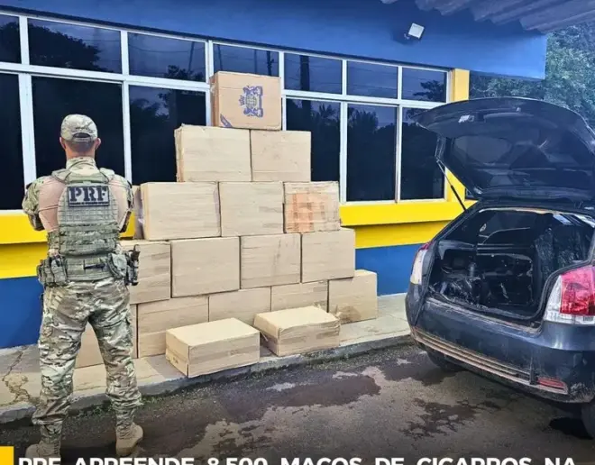 A Polícia Rodoviária Federal (PRF) apreendeu, na madrugada desta terça-feira (25), 8.500 maços de cigarros de origem estrangeira durante uma abordagem no km 108 da BR-364, em Rio Branco.