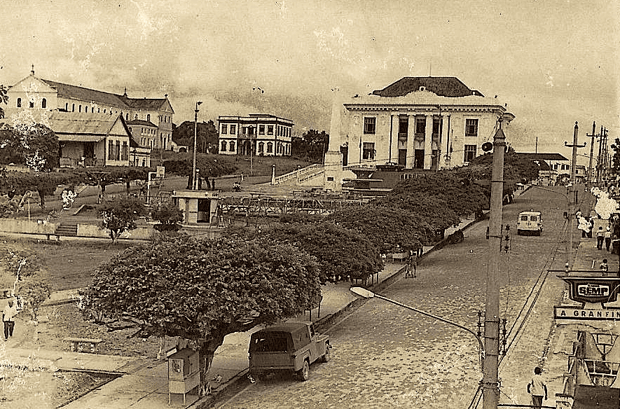 Catedral, casa do bispo, Palácio Rio Branco, Mini-Bar e benjamins na calçada da Av. Getúlio Vargas. Foto do álbum de Adízia Mesquita