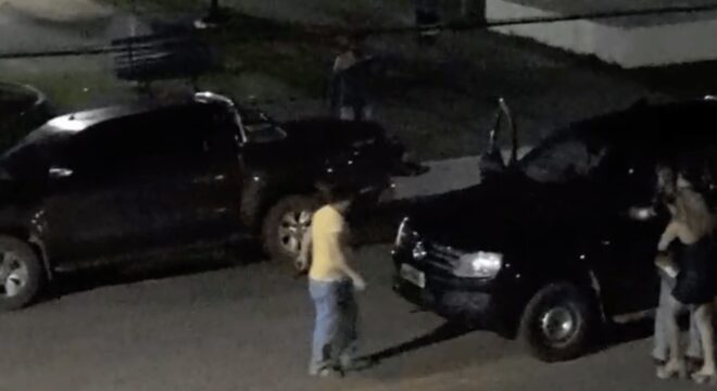 Um vídeo feito após os disparos por celular, mostra o momento em que a arma e retirada das mãos os do motorista da caminhonete por terceiros e ocorre agressões entre ambos.