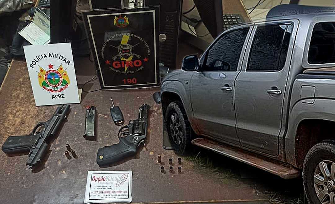 A Polícia Militar foi acionada, e o grupo Giro conseguiu prender dois acusados de participação no roubo da caminhonete. O carro foi recuperado ainda no bairro. Ao avistarem a guarnição os criminosos fugiram, entrando em uma área de mata. Foi apreendida uma pistola ponto 40 e um revólver calibre 32.