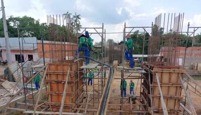 Pilares começam a ser erguidos. Foto: Ascom/Deracre