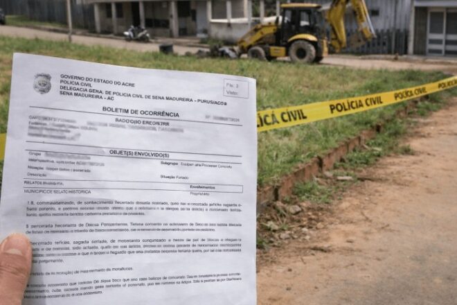 O desaparecimento de aproximadamente 50 metros de meio-fio no Beco Beija-Flor, no bairro Jardim Primavera, em Sena Madureira, agora é tratado como caso de polícia. A Secretaria Municipal de Obras, Urbanismo e Ramais registrou um Boletim de Ocorrência por furto qualificado após constatar que os blocos de concreto foram retirados sem autorização.