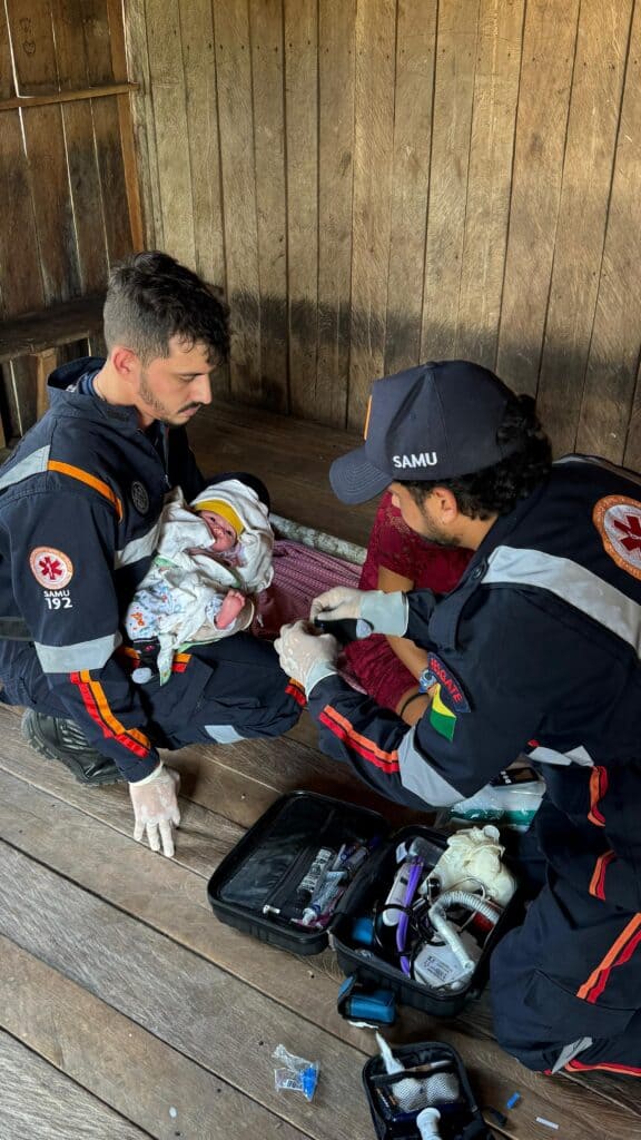 Ao chegar ao destino, a equipe encontrou um cenário diferente do esperado. O parto já havia ocorrido, realizado na residência da paciente, Rosalina Nascimento de Melo, 24 anos, com o auxílio de sua mãe. O recém-nascido estava com sinais vitais estáveis e reflexos neurológicos preservados. Mãe e filho receberam os primeiros cuidados no local e foram transportados para a Maternidade de Cruzeiro do Sul, onde passaram por avaliação médica especializada. Ambos seguem bem, com incentivo à amamentação.