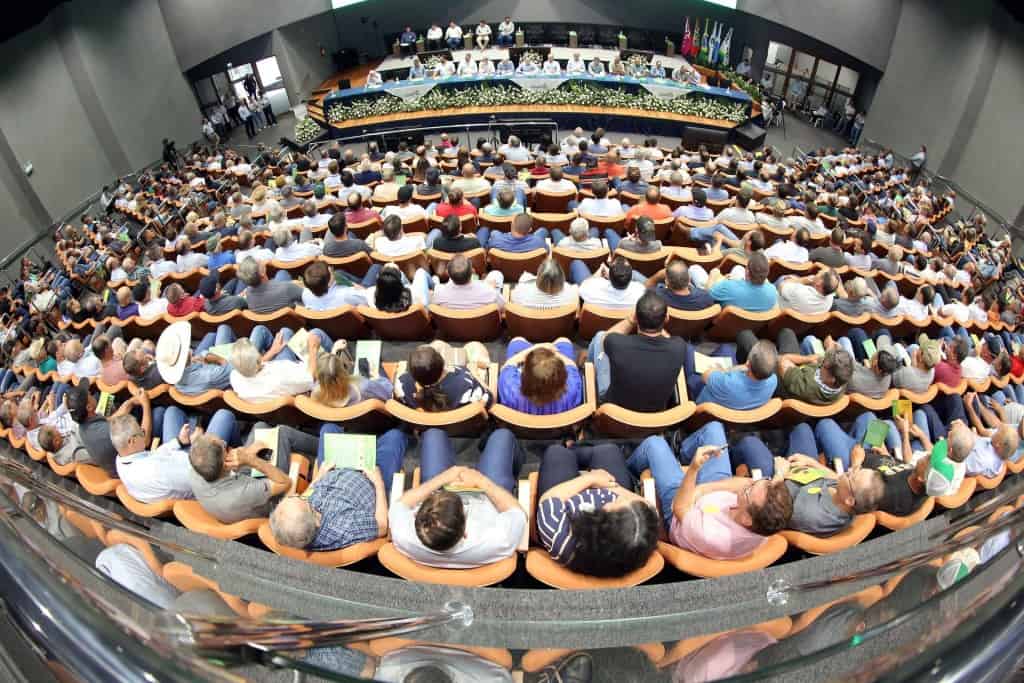 DESEMPENHO – Os números do exercício 2023 foram aprovados pelos cooperados dia 15 de fevereiro, em Assembleia Geral Ordinária (foto), na sede da cooperativa em Campo Mourão, que elegeram os membros do novo Conselho de Administração para a gestão 2024/2028, tendo como presidente o engenheiro agrônomo José Aroldo Gallassini.