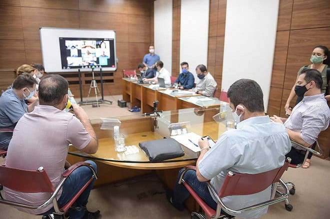 A reunião virtual contou com a participação da prefeita de Rio Branco, Socorro Neri; do presidente da Assembleia Legislativa do Acre, deputado estadual Nicolau Júnior; do presidente da Federação das Indústrias do Estado do Acre (Fieac), José Adriano Ribeiro; do presidente da Associação Comercial, Industrial e Serviços Agrícolas do Acre (Acisa), Celestino Bento de Oliveira; e de representantes da Federação do Comércio, Bens, Serviços e Turismo do Estado do Acre (Fecomércio).