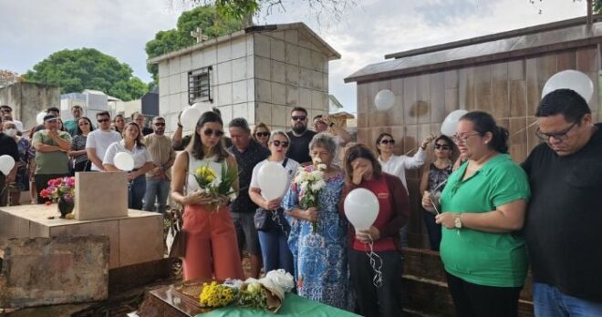 A cerimônia foi marcada pela emoção dos familiares no último adeus e por uma homenagem com dezenas de balões brancos.