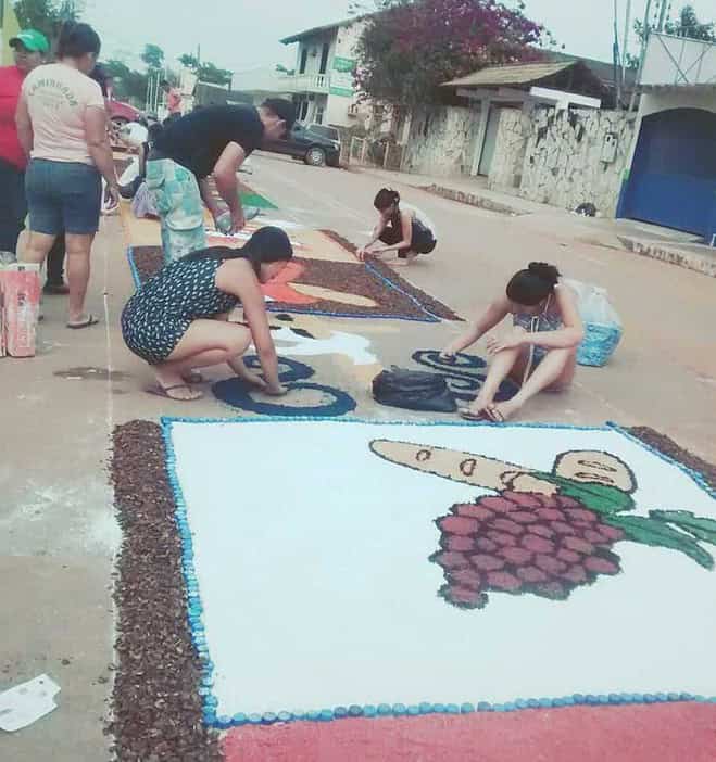 A cerca de quatro anos, o fieis católicos da Igreja Nossa Senhora das Dores, na cidade de Brasiléia, realizam os trabalhos de criar o tapete ornamental por onde irá passar a procissão que vai acontecer as 19 horas desta sexta-feira, dia 26.