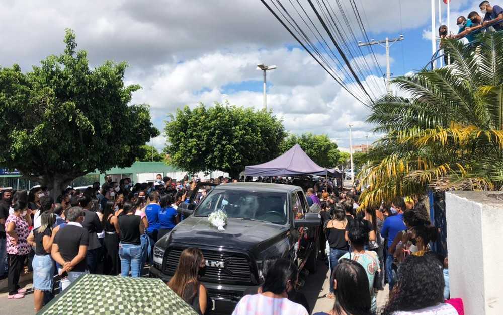 Multidão acompanhando cortejo em Araci, com corpo de médico morto na Bahia — Foto: Bruna Evangelho/TV Subaé