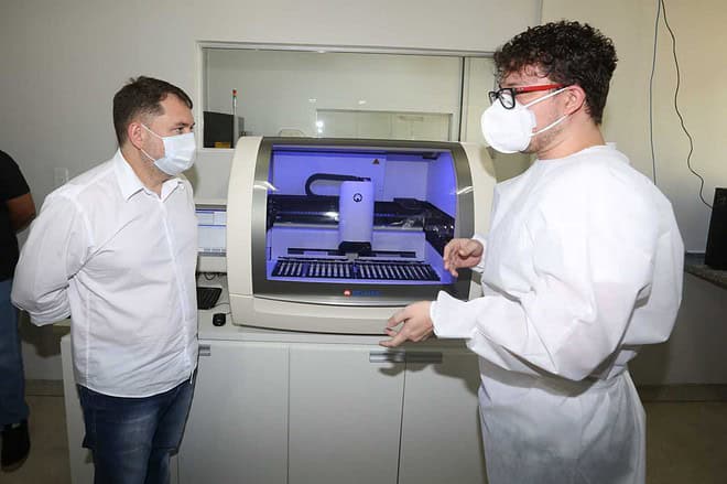 Governo adquiriu duas plataformas automatizadas para acelerar a produção de exames do tipo PCR da Covid-19 Foto: Marcos Vicentti/Secom.