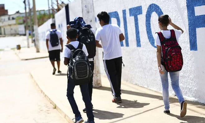 Alunos saindo de escola na Estrutural, no Distrito Federal