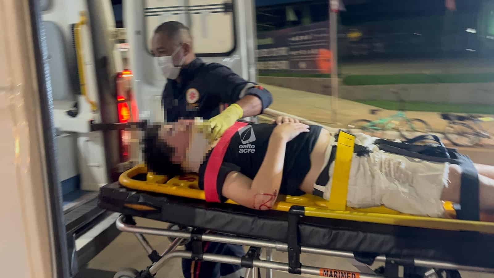 Uma criança de 12 anos ficou ferida na noite deste domingo (18) após ser atropelada por um carro enquanto brincava de bicicleta com amigos, na Estrada Dias Martins, no bairro Jardim de Alah, em Rio Branco.