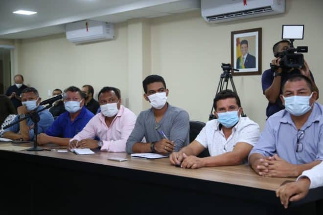 O secretário de Estado de Justiça e Segurança Pública (Sejusp), Paulo Cézar Rocha dos Santos, recebeu, em reunião de trabalho, na manhã desta segunda-feira, 8, na sede da Pasta, comissões de vereadores dos municípios de Brasileia e Epitaciolândia, para discutir assuntos pontuais da região do Alto Acre relativos à segurança na fronteira.