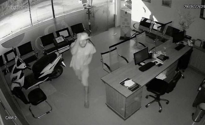 A Polícia Civil já está de posse das imagens e trabalha para prender o criminoso. O prejuízo ainda está sendo calculado pelos administradores do laboratório de análises clínicas.
