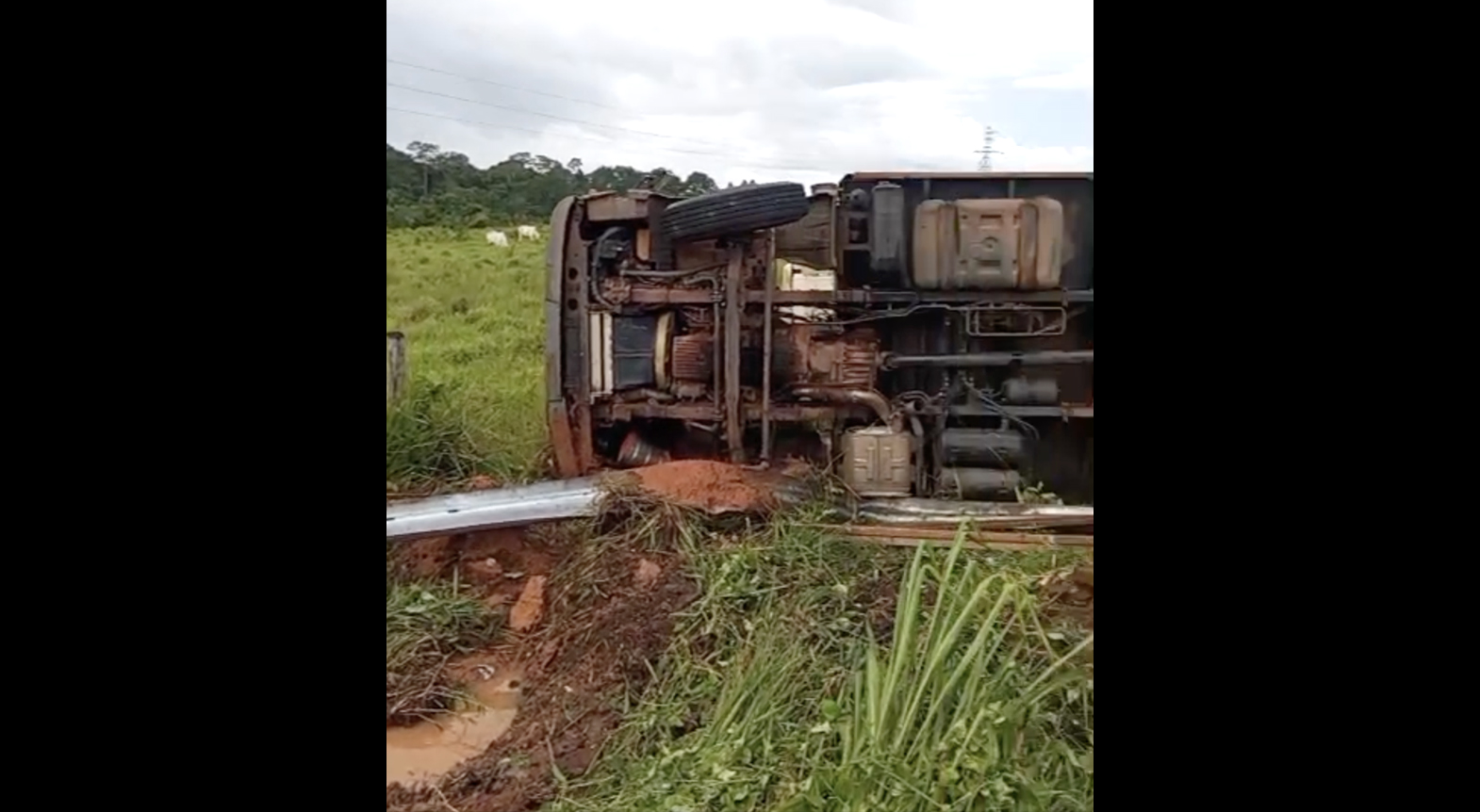 Um caminhão que trafegava pela BR-317 capotou na tarde desta terça-feira após o motorista perder o controle da direção em uma curva, nas proximidades do km 13 da rodovia, no trecho entre o município de Epitaciolândia e Xapuri, Rio Branco. O acidente aconteceu em meio a condições climáticas adversas, com registro de chuva e pista escorregadia na região de fronteira do Acre.