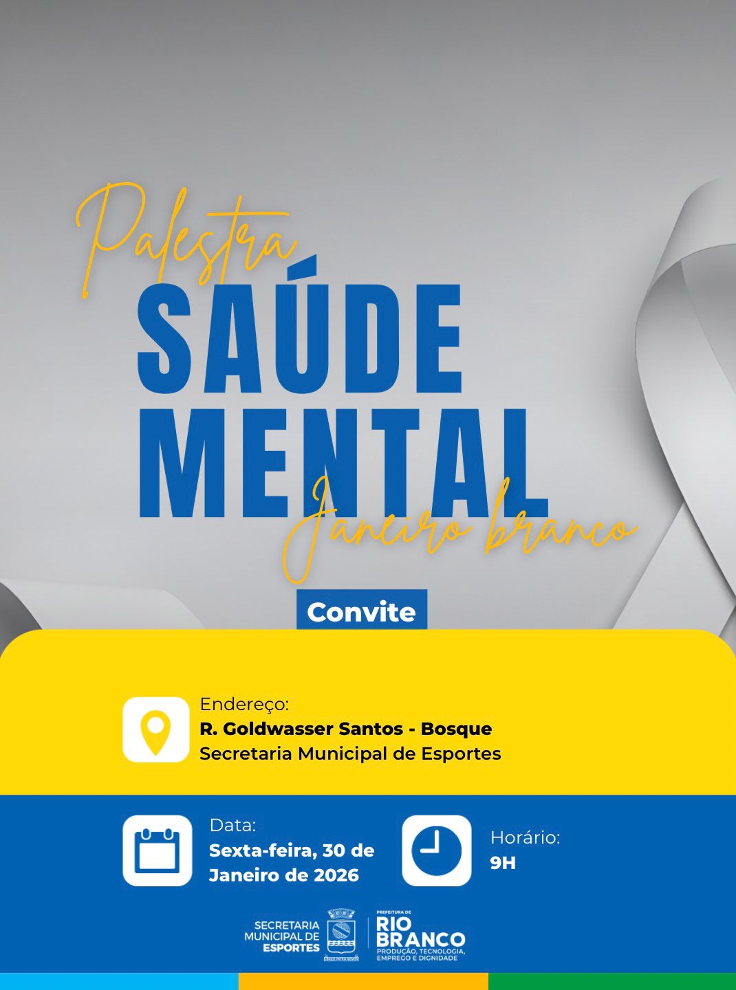 Prefeitura de Rio Branco realizará palestra sobre saúde mental em alusão ao Janeiro Branco